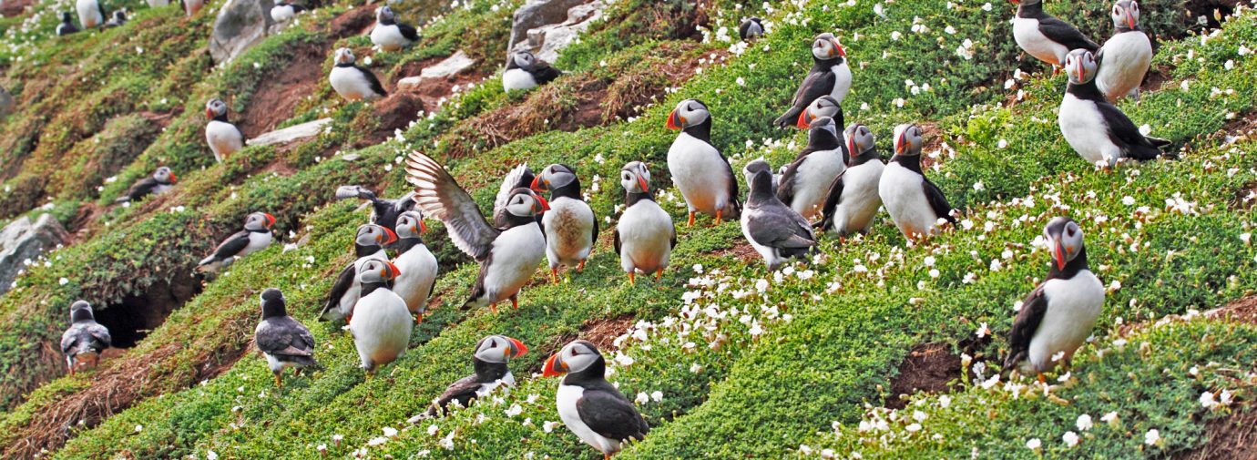 Several species of sea bird use the islands and cliffs of the Pembrokeshire coast as places to breed; to lay eggs and raise young. These birds spend almost their entire lives on the sea or wing, but cannot divorce themselves entirely from land, needing a dry and secure place to raise the next generation. For them, the sheer cliffs and remote islands offer sanctuary from predators and security from the rigours of the sea.