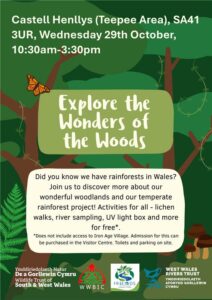 Did you know we have rainforests in Wales? Join us to discover more about our wonderful woodlands and our temperate rainforest project! Activities for all – lichen walks, river sampling, UV light box and more.