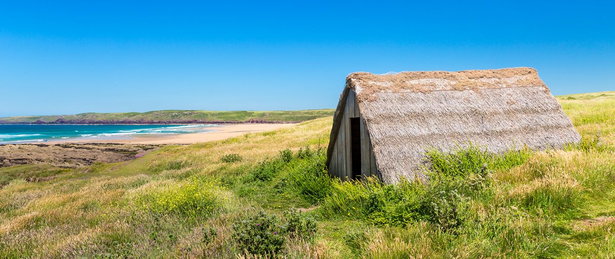 Huntsman’s Leap is a narrow steep-sided inlet formed by sea erosion along a fault line (the technical term is a ‘geo’). Legend has it that a huntsman urged his horse over the chasm, landed safely, then looked back and dropped dead from shock when he saw the area he had jumped over. Next to this inlet is another geo, known as Stennis Ford, which probably takes its name from the Norse ‘fjord’.