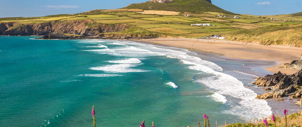 Solva, with its colourful cottages, shops and inns, is one of Pembrokeshire’s prettiest villages. Today it’s a popular boating centre but from the early 17th century it was a busy commercial port. By 1900, some 30 ships were registered here and there were nine warehouses for cargo. Limestone was shipped in and processed in the kilns. Trade declined after 1850, when the railway reached Pembrokeshire. The Solva valley and adjacent Gwadn valley were carved out by glacial meltwater during the Ice Age. When the ice retreated and the sea level rose, both valleys were flooded. The Gwadn has subsequently silted up. The valleys are separated by the knife-edged Gribin ridge, topped by an Iron Age fort.