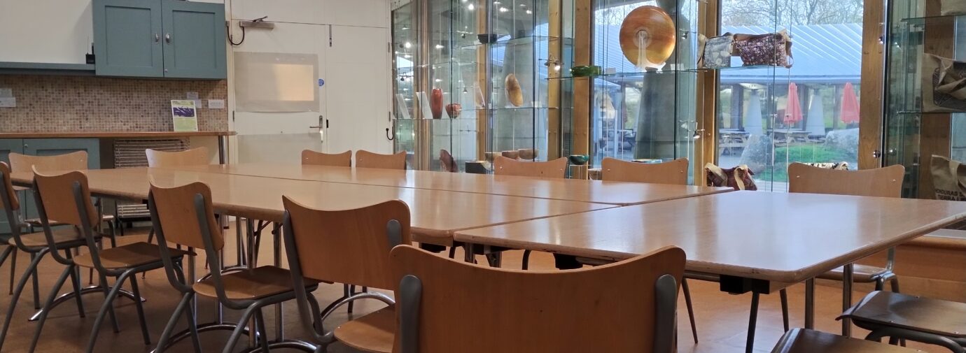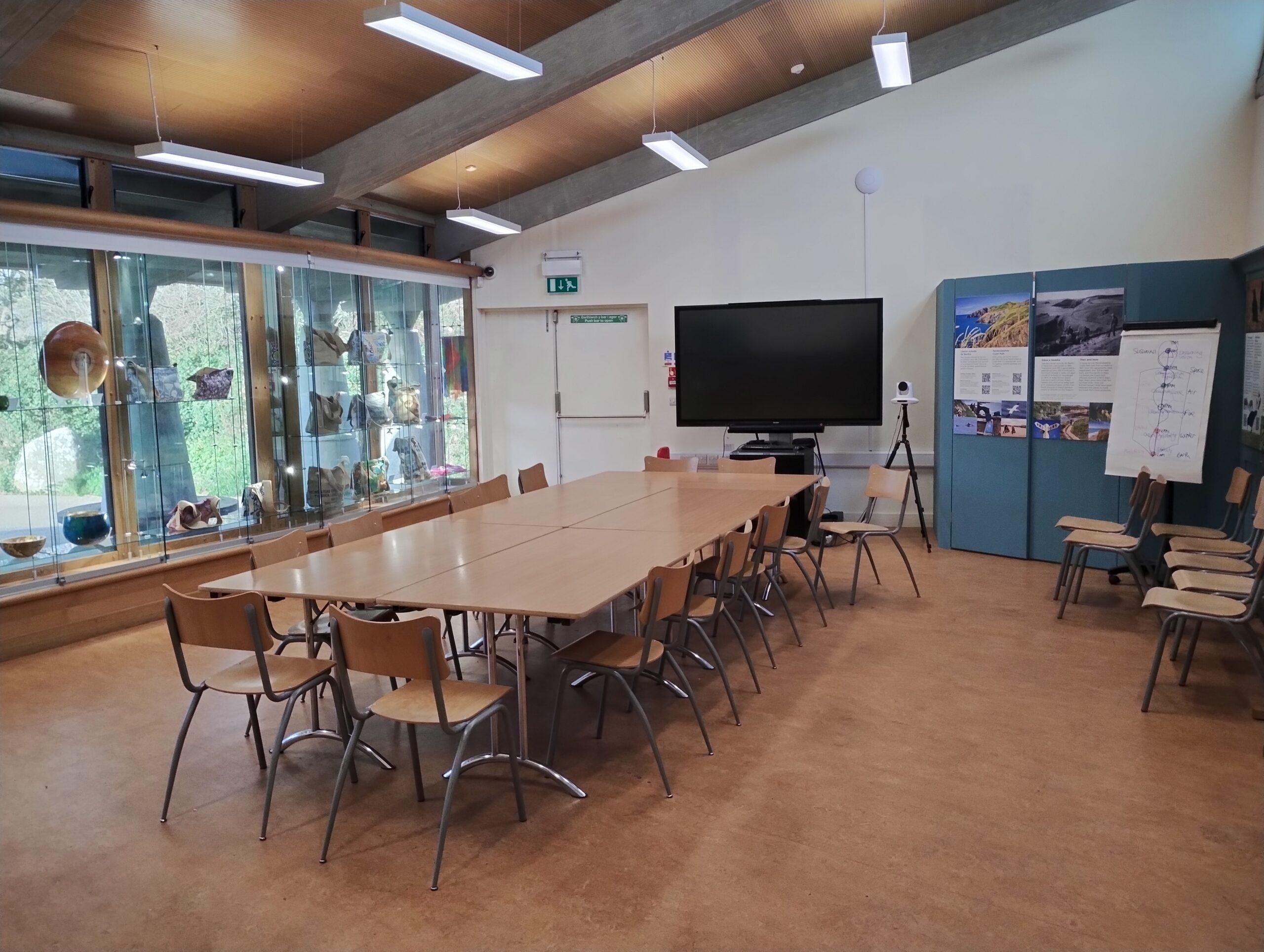The Discovery Room is a bright, spacious, and highly versatile venue. A full glass wall floods the room with natural light, creating an inspiring setting for creativity and community events. During school holidays, it comes alive with art workshops — perfect for young, budding artists. Throughout the year, local community groups make use of the space for everything from talks to yoga sessions. Visiting schools often use the room for hands-on learning experiences linked to our Amgueddfa Cymru gallery exhibitions. The secure glass wall also doubles as an exhibition area, providing an ideal showcase for local artists to display 3D works such as ceramics, jewellery, glass, sculpture, and textiles.