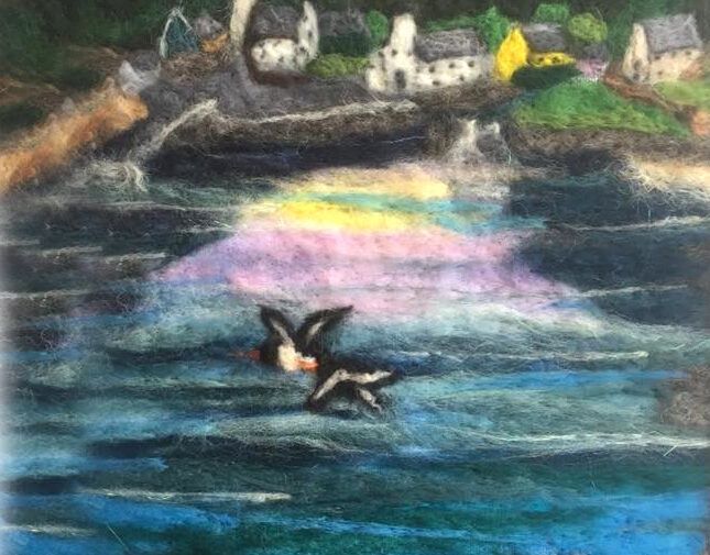 Mic Rushen produces artwork made from felt using wool and a variety of natural fibres.