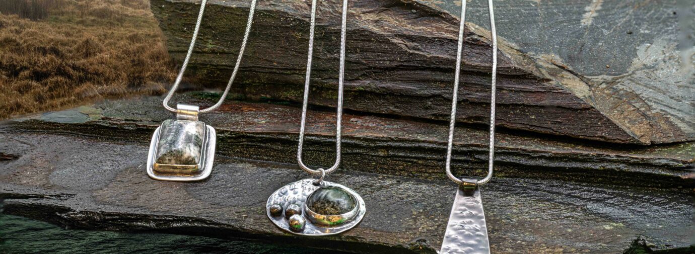 Sue Lewis trading as The Bluestone Bothy has been a member of the group for several years. Sue creates a range of distinctive Preseli Bluestone jewellery which has a strong sense of place. Preseli Bluestone, also known as Preseli Spotted Dolerite, is a unique igneous rock that occurs in only one place in the entire world, Carn Meini in the Preseli Hills of Pembrokeshire. This particular quarry site is now protected and stones from this site can no longer be taken. The stones used in Sue’s jewellery are sourced from boulders cleared from farmland bordering this site then shaped and polished by a local lapidarist. Preseli Bluestone was used in the building of Stonehenge and those who work with crystals say it has strong healing powers, balancing and strengthening the immune system.