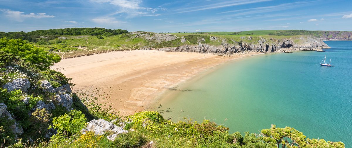 Often described as the most beautiful beach in Pembrokeshire, Barafundle has an exotic touch, with fine golden sand, and dunes and woodland behind the beach.