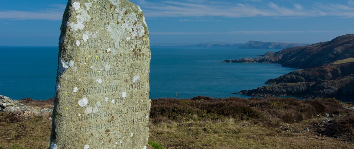 It was on this rugged headland that the last invasion of Britain took place, in 1797. Just west of this route a pillar commemorates the landing by a small force of French troops.