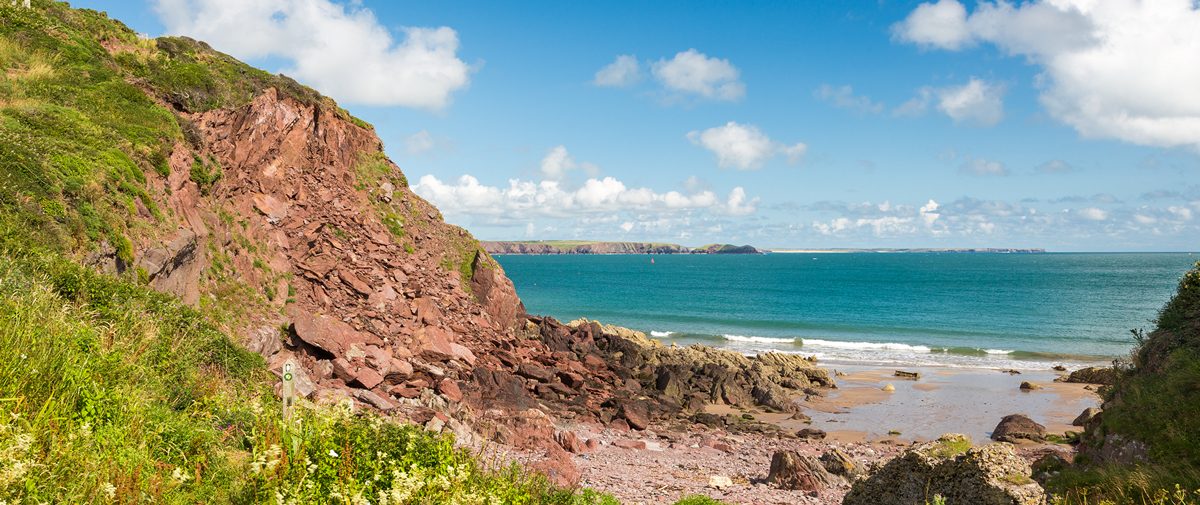 There are sheer Old Red Sandstone cliffs along the peninsula, with a nearly flat cliff-top plateau – the result of wave cut erosion when the sea was 200 feet higher some 400 million years ago. The Dale peninsula is largely treeless but this walk takes in long slopes down to the sea that are unusual for being heavily wooded.